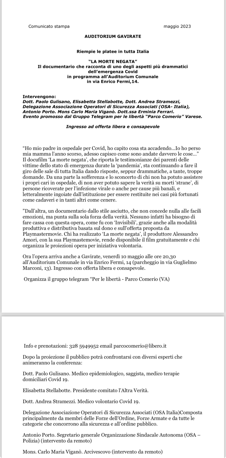 Evento promosso dal Gruppo Telegram per le libertà “Parco Comerio” Varese.