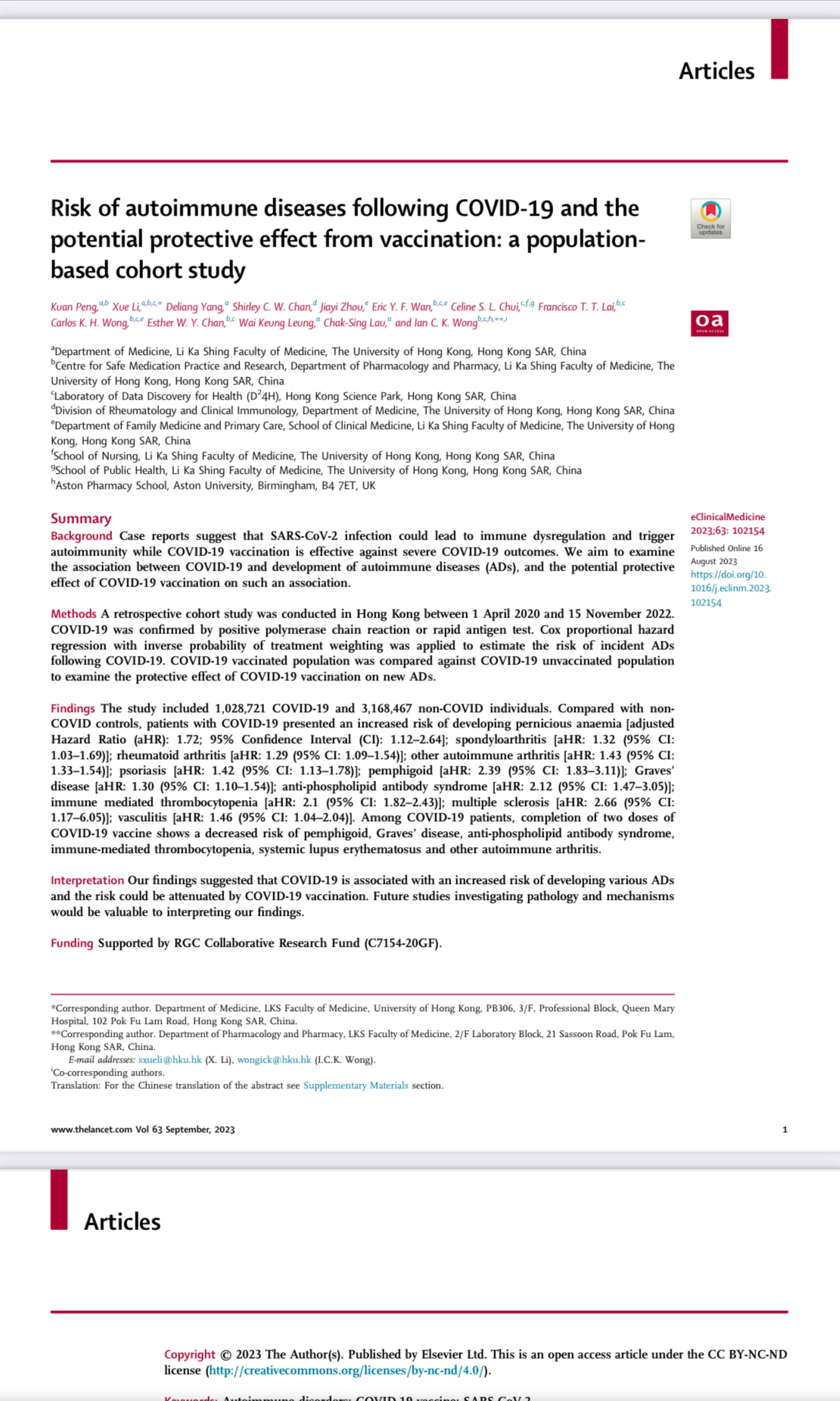 Nello studio di The Lancet sono gli stessi autori ad asserire che "nessuno studio ha valutato l'effetto del vaccino Covid sull'insorgenza dell'autoimmunità. L'associazione tra il vaccino COVID-19 e le manifestazioni autoimmuni di nuova insorgenza è casuale o causale resta da chiarire".