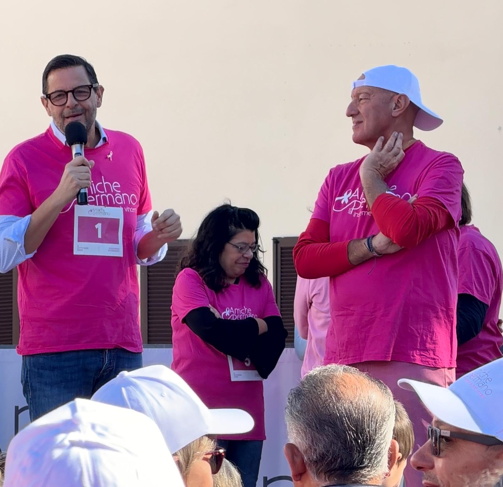 La mattinata ha visto la partecipazione di volti noti come la campionessa di volley Francesca Piccinini e il comico Enrico Bertolino. Piccinini, visibilmente emozionata, ha raccontato: “È il secondo anno che partecipo e oggi, con questo sole, la camminata è ancora più bella. Vedere la piazza piena di donne in rosa è per me un grande orgoglio. Qui si respira solidarietà e coraggio. Ognuno di noi deve cercare di aiutarsi e di aiutare l’altro: questa è la vera forza di Amiche per Mano.”