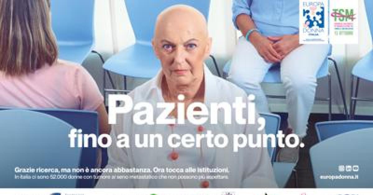 Cuore della campagna 'Pazienti, fino a un certo punto' è uno spot ambientato in una sala d'attesa, simbolo del tempo sospeso vissuto da molte pazienti, che lentamente si riempie di donne - pazienti reali - con tumore metastatico che manifestano l'urgenza di approvare i farmaci già validati a livello europeo, ma ancora non disponibili in Italia. Attraverso la campagna - spiegano i promotori - il pubblico è invitato a unirsi ai numerosi eventi, circa 200 in tutta Italia, che le associazioni della rete di Europa Donna Italia organizzeranno per il 13 ottobre. Tra le iniziative: camminate collettive, spettacoli teatrali, flashmob, attività culturali e l'illuminazione in fucsia - colore del tumore al seno metastatico - di monumenti storici ed edifici pubblici. L'elenco dettagliato sarà pubblicato sul sito europadonna.it.