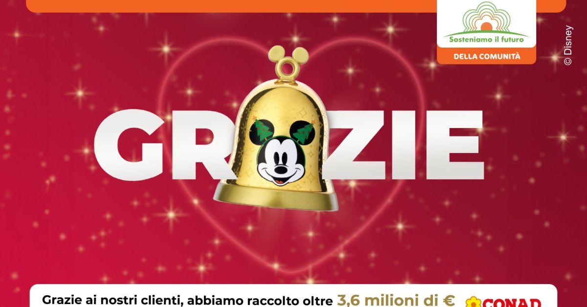 BOLOGNA - Conad annuncia la raccolta di oltre 3,6 milioni di euro a favore di 27 ospedali e reparti pediatrici italiani, a seguito dell'iniziativa "Facciamo sentire il nostro amore" attiva nel periodo natalizio dello scorso anno. Questo risultato rappresenta il valore più alto mai raggiunto nelle cinque edizioni del progetto, dal 2021 ad oggi, portando la raccolta complessiva a oltre 11,5 milioni di euro. Ciò è stato possibile grazie alla straordinaria generosità dei clienti Conad, che anche quest'anno hanno sostenuto l'iniziativa collezionando le campanelle di Natale ispirate ai personaggi più amati dei film d'animazione Disney, una linea di 13 soggetti realizzati in plastica riciclata (ABS). Durante l'operazione, ogni 15 euro di spesa, con un 1,90 euro in più, i clienti Conad potevano ricevere una campanella di Natale e devolvere 50 centesimi in beneficenza. "Lo scorso anno erano stati raccolti 2,2 milioni di euro, quest'anno 3,65, con un incremento del 65%. Un risultato che ci rende particolarmente orgogliosi perché testimonia la forza della solidarietà e il legame profondo tra Conad e le Comunità in cui operiamo. Con "Facciamo sentire il nostro amore" rinnoviamo un progetto che, anno dopo anno, porta vicinanza e sostegno concreto a chi lavora ogni giorno nelle strutture sanitarie dedicate ai più piccoli e alle famiglie che affrontano momenti difficili" - dichiara Francesco Avanzini, Direttore Generale di Conad. "In cinque anni abbiamo raccolto oltre 11,5 milioni di euro: un traguardo reso possibile grazie alla generosità dei nostri clienti e all'impegno quotidiano delle cooperative, dei soci e del personale dei punti vendita, che credono nel valore di questa iniziativa. È un risultato che ci spinge a continuare su questa strada, investendo nel futuro dei bambini e nel benessere dei territori". L'iniziativa rientra nel grande progetto di sostenibilità di Conad "Sosteniamo il futuro", basato su tre dimensioni fondamentali dell'agire quotidiano dell'insegna: rispetto dell'ambiente, attenzione alle persone e alle comunità, valorizzazione del tessuto imprenditoriale e del territorio italiano. -foto ufficio stampa Conad- . mgg/com 27-Gen-26 15:21