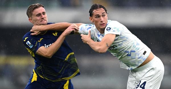 Nel primo tempo botta e risposta Zielinski-Giovane: nerazzurri a -1 dal Napoli VERONA - Un'autorete in pieno recupero permette all'Inter di portare via tre punti dal Bentegodi: la sfortunata deviazione di Frese, su cross di Barella, regala il secondo posto momentaneo ai nerazzurri di Chivu, stessi punti della Roma (in campo stasera con il Milan) e a -1 dal Napoli capolista. Nona vittoria nelle ultime 10 partite per l'Inter, che passa 2-1 contro un Hellas mai domo ma sfortunato. Nel primo tempo, botta e risposta tra Zielinski e Giovane. Dopo appena 3' l'ex Napoli, lanciato da Carlos Augusto, compie un perfetto inserimento e va vicino al gol, ma Montipò devia in calcio d'angolo. La compagine nerazzurra parte con il piede sull'acceleratore e al 7' Lautaro crea una grande occasione con un delizioso pallonetto, sul quale è decisivo il salvataggio di Nelsson. I tempi sono maturi per il vantaggio degli ospiti, tant'è che al 16' Piotr Zielinski realizza una splendida rete al volo su corner di Calhanoglu. L'Inter prova a cavalcare il momento positivo e al 25' Bastoni, su cross di Luis Henrique, mette in difficoltà Montipò con un insidioso colpo di testa. La prima conclusione dell'Hellas Verona arriva alla mezz'ora con un'incornata di Frese, che però viene facilmente disinnescata da Sommer. Superato il momento di difficoltà, gli uomini di Paolo Zanetti riescono ad agguantare il pareggio al 40' grazie a Giovane che, su suggerimento di Orban, batte Sommer con un potente destro. In pieno recupero i gialloblù sfiorano addirittura il sorpasso con Orban, che colpisce un clamoroso palo; si va, dunque, a riposo sul parziale di 1-1. Nella ripresa gli scaligeri tornano in campo con il giusto piglio per provare a riprendere da dove avevano lasciato, ma sono i nerazzurri ad andare più volte alla conclusione prima con Lautaro Martinez e poi con Calhanoglu. Chivu prova a scuotere i suoi attraverso delle sostituzioni e al 72' il neo-entrato Esposito si fa subito vedere in attacco con un colpo di testa, che però termina alto sopra la traversa. Due minuti più tardi è Dimarco ad andare al tiro da posizione defilata, ma Montipò si oppone. All'84' Barella va al cross per Lautaro Martinez, che la gira di testa, ma Bella-Kotchap devia in corner. Nel finale l'Inter prova in ogni modo a portare a casa l'intera posta in palio, lamentandosi anche per un presunto fallo in area di rigore ai danni di Esposito, e alla fine riesce a tornare in vantaggio: sul cross dal limite dell'area di Barella, Frese fa un maldestro autogol che regala la vittoria per 1-2 agli ospiti al 94'. Inter seconda, a -1 da Conte, Verona resta terzultimo a quota 5. - foto Image - . mec/fsc/red 02-Nov-25 14:45