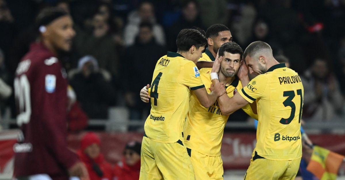 Rossoneri decisivi nella ripresa e vittoriosi dopo il doppio svantaggio TORINO - Un Milan mai domo va sotto di due reti, rimonta e vince per 3-2 sul campo del Torino. Sono Rabiot e Pulisic, autore di una doppietta partendo dalla panchina, a suonare la carica per la formazione rossonera, passata inizialmente sotto a causa dei gol di Vlasic e Zapata. La prima svolta del match arriva già all'8', quando Tomori interviene in maniera scomposta in area e commette un ingenuo fallo di mano. L'arbitro assegna il calcio di rigore per i padroni di casa. Dal dischetto si presenta Vlasic, che supera Maignan e firma l'1-0 per i suoi. Gli ospiti sembrano ancora negli spogliatoi e i granata ne approfittano, trovando l'immediato raddoppio al 17'. Nkunku perde palla e Vlasic orchestra una rapida ripartenza, servendo Zapata che dalla destra fa partire un diagonale che trafigge Maignan. Un gol speciale per il colombiano, che va in gol a quasi un anno di distanza dall'ultima volta a causa di un grave infortunio al ginocchio. I rossoneri si scuotono e al 24' accorciano le distanze. Rabiot riceve palla dai 25 metri e lascia partire un sinistro meraviglioso che si infila sotto l'incrocio dei pali, battendo Israel per il 2-1 che riapre i conti. Alla mezz'ora, Leao accusa un problema muscolare ed è costretto a uscire dal campo. Si va al riposo sul 2-1. Al 10' della ripresa, i sette volte campioni d'Europa sfiorano il pareggio quando Israel respinge un colpo di testa di Bartesaghi, con Ricci che si avventa sulla respinta a botta sicura ma trovando ancora il portiere rivale pronto a salvare i suoi. Gli uomini di Allegri, oggi squalificato, vanno all'assalto della porta avversaria e firmano il pareggio al 22'. Pulisic, entrato da pochi secondi al posto di Bartesaghi, si fa trovare al posto giusto in area di rigore e raccoglie un cross di Saelemaekers dalla sinistra, battendo Israel con un piatto mancino che vale il 2-2. Maignan e compagni non si accontentano e al 32' completano la rimonta. Ricci si invola sulla destra e serve una palla a rimorchio per uno scatenato Pulisic, che con un sinistro al volo supera Israel nell'angolino per il 3-2 che fa impazzire il settore ospiti dello stadio. I ragazzi di Baroni accusano il colpo e nel finale non riescono a impensierire Maignan, con il risultato che non cambierà più. Grazie a questi preziosi tre punti, il Milan sale in vetta a quota 31, al pari del Napoli. Il Torino resta invece al quintultimo posto con 14 punti all'attivo. - foto Image - . xh9/gm/red 08-Dic-25 22:52