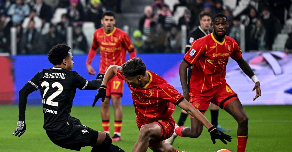 Banda porta avanti i salentini, poi il pareggio di McKennie e il brutto errore dal dischetto del canadese TORINO - La Juventus spreca l'occasione di vincere cinque partite consecutive in tutte le competizioni e si ferma: è solo 1-1 col Lecce, con i giallorossi che si portano avanti a fine primo tempo con Banda, McKennie che pareggia in apertura di ripresa e David che calcia in maniera pessima il rigore del possibile 2-1 respinto da un grande Falcone. Dopo l'omaggio all'ex Danilo, la Vecchia Signora inizia un autentico assalto, in quella che è la 100a in bianconero di Bremer. Spalletti sorprende tutti schierando i suoi col 4-2-3-1 e McKennie alle spalle di David. Il Lecce fatica a prendere i riferimenti e le distanze. Nasce così una mezz'ora di assedio bianconero, con Yildiz e Cambiaso assoluti protagonisti. Falcone si supera su David (parata e palo) e sull'esterno della Nazionale italiana, mentre il turco colleziona dribbling e giocate che mandano al bar il debuttante Matias Perez. I salentini sostituiscono il difensore cileno dopo mezz'ora da incubo e i ritmi si abbassano, con la Juventus che non riesce a sbloccare un match dominato in lungo e in largo. Come spesso accade, dunque, basta un singolo errore a cambiare la partita ed è bianconero. Cambiaso, tra i più positivi fino a quel momento, commette un'autentica follia difensiva: passaggio orizzontale che smarca Banda, bravo a colpire per l'1-0 nel recupero (46'pt). La Vecchia Signora è dunque in svantaggio in casa e Spalletti interviene, inserendo l'imprevedibilità di Zhegrova. Il kosovaro è subito impattante, avviando l'azione che porta al pari: lo sigla McKennie, inseritosi alla perfezione sul tiro-cross di Yildiz (49'). Da qui in poi riprende l'assedio della Juve, bloccato magistralmente da un ottimo Falcone. Il portiere salva i suoi ed è decisivo anche al 64', quando David ha la chance della vita su rigore: pessimo il suo tentativo, un mezzo scavetto mal riuscito, e permane il pari. Il Lecce prova a rifarsi avanti con Stulic e coi cambi, mentre Spalletti ordina l'assalto totale con Openda e il 4-2-4. La mossa funziona solo in parte, visto che i bianconeri devono inserire anche Adzic per creare ulteriore verve offensiva. Il finale è il festival dello spreco della Juve, con Falcone che salva su David e una clamorosa doppia chance: Yildiz colpisce il palo e Openda si divora il gol-vittoria a porta vuota. Nulla da fare, il Lecce ferma la Juventus sull'1-1 e ottiene un punto d'oro: è +5 momentaneo sulla salvezza. La Juve rallenta. - Foto Image - . xq3/ari/red 03-Gen-26 20:06
