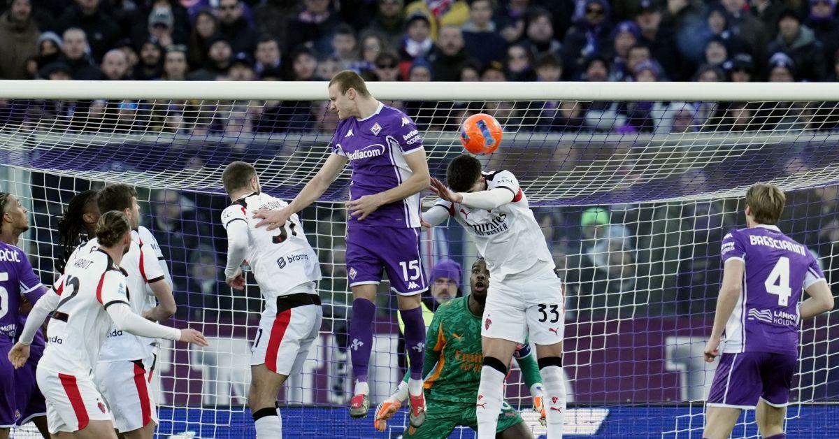 Viola in vantaggio con Comuzzo, ma ripresi nel finale FIRENZE - Il Milan riacciuffa la Fiorentina soltanto al 90°, beffa Kean e compagni che gustavano già il dolce sapore dei tre punti e consegna il titolo di campione d'inverno all'Inter. Al Franchi i rossoneri vanno vicino alla seconda sconfitta stagionale in campionato, mentre alla Fiorentina, come era già avvenuto mercoledì scorso contro la Lazio, rimane il rimpianto per un vantaggio non concretizzato e il pareggio incassato in extremis. Nkunku, entrato nel corso della ripresa, salva Allegri e i suoi dopo l'1-0 di Comuzzo al termine di un match equilibrato con i gigliati che hanno preso anche un palo con il nuovo acquisto Brescianini. Il copione del match è chiaro fin dal fischio di inizio con i padroni di casa che fanno la partita e gli ospiti, con Allegri che rinuncia contemporaneamente a Leao, Rabiot e Modric, ad agire di rimessa. La scelta per i rossoneri pagherebbe anche, se Pulisic non andasse incontro a uno dei suoi peggiori pomeriggi in termini di finalizzazione. Per due volte Fullkrug, al debutto da titolare, gli serve ottimi assist di sponda per presentarsi solo davanti a De Gea (17' e 22'), ma l'americano fallisce, così come fa anche in contropiede al 26'. La Fiorentina risponde con cross pericolosi di Gudmundsson e Gosens da sinistra non raccolti dai compagni di squadra. La gara non è nervosa ma ci pensa Massa, non in grande giornata, a renderla tale, prima ammonendo Kean all'ennesimo fallo subito non fischiato e poi espellendo Vanoli, per proteste, dopo un richiamo prolungato del direttore di gara su Gosens. Dopo un buon inizio di ripresa di marca viola, Allegri inserisce 3 cambi allo scoccare dell'ora di gioco fra cui Leao e Rabiot. Le sostituzioni, a cui aggiungere Fofana per Loftus Cheek al 65', arrivano un soffio prima del gol della Fiorentina realizzato da Comuzzo che anticipa di testa sia Bartesaghi che Pavlovic. Proprio quest'ultimo è l'uomo che lascia il campo per Nkunku a 15' dalla fine, con Bartesaghi arretrato in difesa. Il Milan assedia i 30 metri finali viola nella parte conclusiva della sfida, i brividi per i toscani arrivano in particolare su conclusione di Ricci da fuori area (88'), poco prima del pareggio di Nkunku al 90' che sfrutta al meglio una palla recuperata a centrocampo da Saelemekers su Fagioli. Prima del triplice fischio traversa di Bresciani, poi parata decisiva di Maignan su Kean. Finisce 1-1. - Foto Ipa Agency - . xb8/ari/red 11-Gen-26 17:24