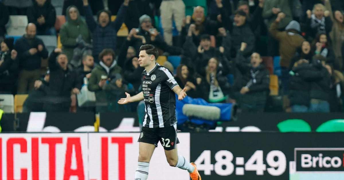 Decide una rete di Ekkelenkamp, giallorossi vicini al pareggio con Mancini nel recupero UDINE - La Roma frena e perde il quarto posto. Nel Monday Night della 23^ giornata di Serie A, i giallorossi cedono 1-0 in casa dell'Udinese, che conquista i tre punti grazie al gol di Ekkelenkamp a inizio ripresa. Al Friuli si gioca con il settore ospiti chiuso dopo il provvedimento di alcune settimane fa, ma sugli spalti del Bluenergy Stadium sciarpe e magliette giallorosse non mancano. È l'Udinese a prendere le iniziative più interessanti in avvio. Poco prima del 10', Svilar interviene due volte in un minuto su Atta ed Ekkelenkamp, protagonista di un'altra chance per i friulani al 25', quando Mancini lo anticipa di un soffio su un cross di Davis. Di Malen l'unica conclusione pericolosa degli ospiti, quando alla mezz'ora l'olandese si gira in area e calcia, trovando la respinta di Okoye. Si va così all'intervallo sul risultato di 0-0. A inizio ripresa, dopo un tentativo di Wesley neutralizzato dall'estremo difensore bianconero, è l'Udinese a sbloccare la gara. Al 49' Ekkelenkamp si porta alla battuta di una punizione da poco pericolosa, ma il suo tiro, dopo aver trovato la deviazione di Malen, inganna Svilar e finisce in rete. 1-0. I padroni di casa rallentano per tirare il fiato, mentre Runjaic è costretto a togliere Davis, che dopo uno scatto si tocca dolorante l'adduttore sinistro. Al 72' arriva la prima occasione per la Roma nel secondo tempo, con un tiro di Malen respinto da Kristensen. Brividi per gli ospiti al 76', quando Ekkelenkamp fa di nuovo paura calciando una punizione sotto la traversa: Svilar fa buona guarda e mette in angolo. Nonostante il risultato, il match rimane equilibrato fino all'ultimo, perché l'Udinese gioca da grande squadra e non si arrocca in difesa. Al 90', durante una mischia nell'area bianconera, Cristante spinge in porta il pallone con un colpo di testa, ma Sacchi annulla per il fuorigioco di Tsimikas, autore del cross per il compagno. A recupero inoltrato miracolo di Okoye, che nega il pareggio a Mancini. Finisce così 1-0 a Udine. La Roma fallisce il controsorpasso alla Juventus, mentre i bianconeri salgono in nona posizione a quota 32: sognare l'Europa non è impossibile. - Foto Ipa Agency - . mec/mc/red 02-Feb-26 22:57