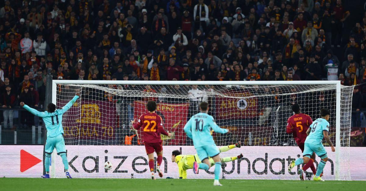 Splendida partita all'Olimpico: 3-3 al 90°, poi ai supplementari decide la rete di Cambiaghi ROMA - Sette gol, spettacolo e bel calcio. Alla fine a far festa è il Bologna che espugna l'Olimpico e conquista i quarti di finale di Europa League, competizione che la Roma saluta a testa alta e con qualche rimpianto. I rossoblù, dopo l'1-1 del Dall'Ara, piegano i giallorossi ai supplementari per 4-3 nel derby di coppa al termine di un match dalle infinite emozioni. Ospiti avanti con Rowe (22') e subito riacciuffati da N'Dicka (32'). Nel finale di frazione Bernardeschi dal dischetto riporta avanti gli ospiti e Castro firma il tris al 58'. A cambiare la partita è il 17enne Vaz, subentrato al posto di uno spento El Shaarawy, che conquista il rigore del 3-2, poi trasformato da Malen (69'), e serve a Pellegrini l'assist per il gol del 3-3 all'80'. Ai supplementari a deciderla è Cambiaghi (111'), che regala al Bologna i quarti di finale e spegne i sogni europei della Roma. Bernardeschi e compagni si giocheranno un posto in semifinale con l'Aston Villa di Unai Emery, uscito vittorioso dal rispettivo ottavo con il Lille. La formazione di Gasperini saluta le coppe e ripartirà domenica alle 18.00 dalla sfida casalinga con il Lecce valida per la 30esima giornata di Serie A, l'ultima prima della sosta nazionali. Il Bologna ospiterà la Lazio domenica alle 15.00. Primo tempo con poche emozioni e tante interruzioni. Roma con il pallino del gioco in mano e Bologna insidioso in ripartenza con Rowe e Bernardeschi. Gasperini perde Koné, non al meglio fisicamente, sostituito da Pellegrini al 20'. Alla prima opportunità reale sono i rossoblù a portarsi in vantaggio: Castro si avventa su una palla vagante e serve Rowe, che dai venti metri batte Svilar con un destro a giro al 22'. La squadra di Italiano si rende pericolosa in contropiede con Bernardeschi, che impegna Svilar con un destro a incrociare da posizione defilata. La Roma sfiora il pari colpendo una traversa su punizione con Pellegrini al 31' e un minuto dopo trova l'1-1: angolo di Pellegrini sulla testa di N'Dicka, perso da Lucumì, che segna il quarto gol nelle ultime quattro partite e riporta il match in equilibrio. Nel finale di frazione ingenuità di El Shaarawy, che stende Zortea in area e concede al Bologna l'opportunità di andare negli spogliatoi avanti nel punteggio. Bernardeschi non trema dagli undici metri e firma al 45+2' il 2-1. Avvio di seconda frazione timido del Bologna, che si schiaccia tutto nella propria metà campo cercando di limitare il palleggio della Roma. Nel momento migliore dei giallorossi sono gli ospiti a trovare il colpo del ko. Al 58' Rowe scippa un disattento N'Dicka al limite dell'area, Castro si avventa sul pallone e batte Svilar con un potente destro di collo in piena area di rigore. Partita che sembra mettersi sui binari del Bologna, che offre ai padroni di casa l'opportunità di accorciare. Vaz sguscia in area a Ferguson, che atterra il 17enne francese e spedisce Malen dagli undici metri. L'olandese non sbaglia dal dischetto e firma il 3-2 al 69'. La Roma prende fiducia e riesce a pareggiare i conti a dieci minuti dal 90'. Vaz mette a soqquadro la retroguardia del Bologna, serve al limite dell'area Pellegrini, che batte Ravaglia di sinistro a giro per il 3-3. Nel finale Freuler si mangia il gol del 4-3 e non riesce ad evitare ai suoi i supplementari. Squadre stanche e tante imprecisioni e ad approfittarne è il Bologna: al minuto 111 Dallinga imbuca per Cambiaghi, che scappa alle spalle di N'Dicka e con l'aiuto del palo supera Svilar per il 4-3 finale che regala i quarti ai felsinei. - Foto Ipa Agency - . mec/ari/red 19-Mar-26 23:49
