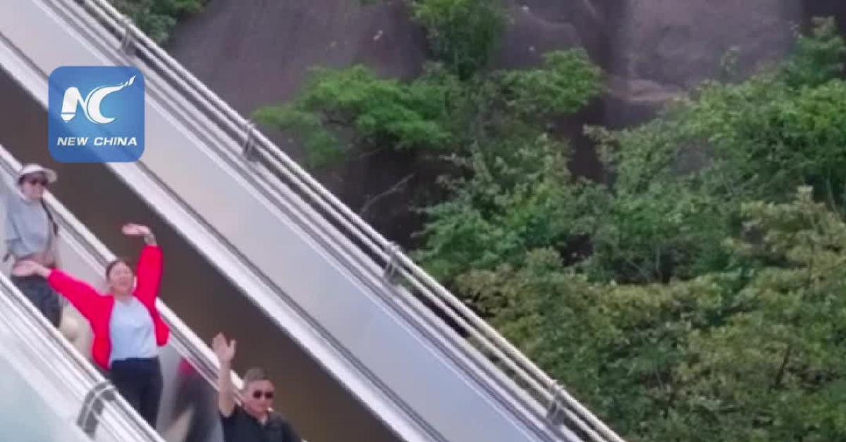 Desiderate una veduta sulle montagne senza doverle scalare? Una scala mobile lunga 1.236 metri consentirà ai visitatori dell'area panoramica di Lingshan, a Shangrao, in Cina, di salire senza fatica. (XINHUA)
