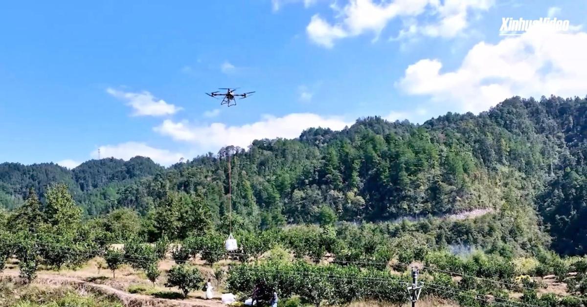 Mentre i pomeli entrano nella stagione del raccolto nella città di Tongren, nella provincia sudoccidentale cinese di Guizhou, i droni trasportano i frutti direttamente dai frutteti di montagna ai camion. Tagliando i costi del lavoro e migliorando l'efficienza, offrono una nuova soluzione per il trasporto agricolo nella regione. (XINHUA)