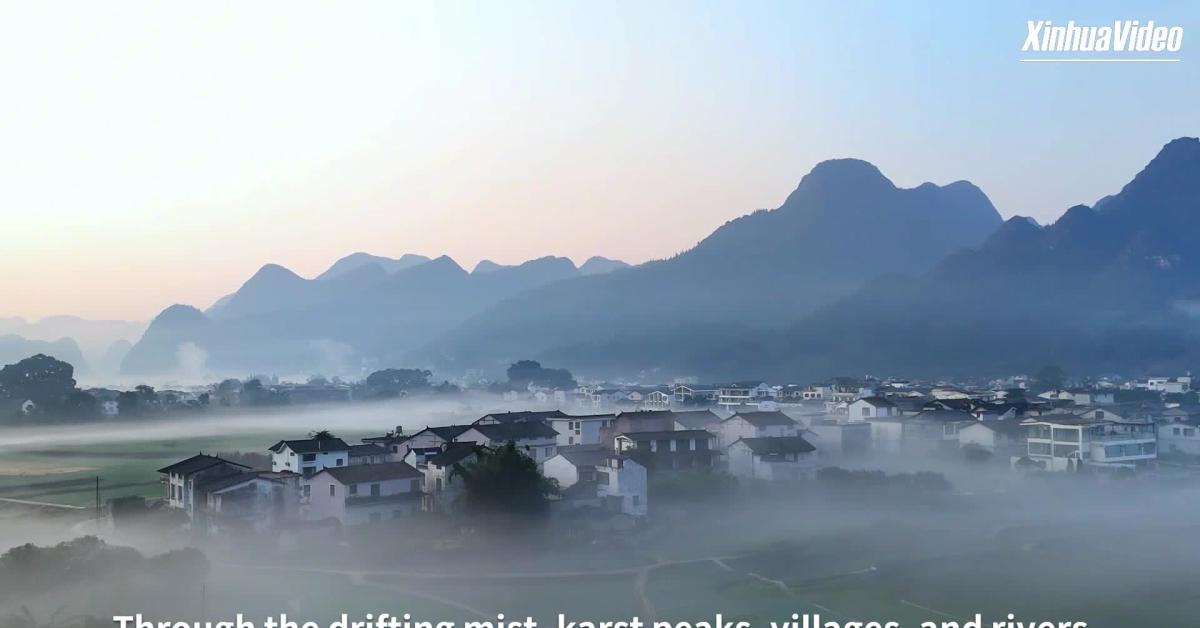Un manto di nebbia da avvezione ha attraversato Wanfenglin, a Xingyi, nel Guizhou sudoccidentale, trasformando il paesaggio carsico in un "paradiso terrestre".Cime, villaggi e fiumi sono emersi dalla foschia come in un dipinto a inchiostro vivente. (XINHUA)