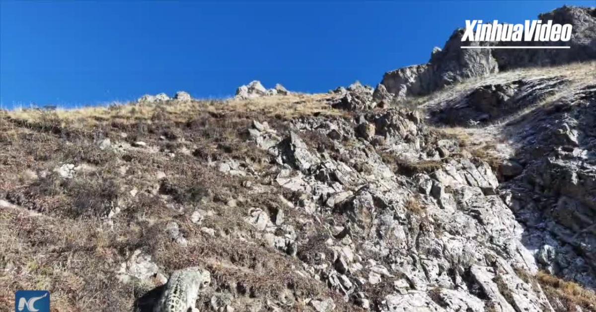 Un drone ha catturato immagini rare di un leopardo delle nevi durante pattugliamenti sui monti Qilian, nella provincia cinese del Gansu, nel nord-ovest della Cina, offrendo uno sguardo su questo elusivo animale di Classe I protetto a un'altitudine di 3.600 metri sul livello del mare. (XINHUA)