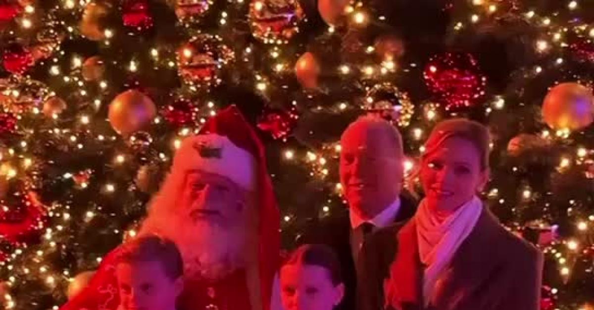 Monte-Carlo, i principi di Monaco Alberto e Charlene con i figli accendono l’albero di Natale in Place du Casinò