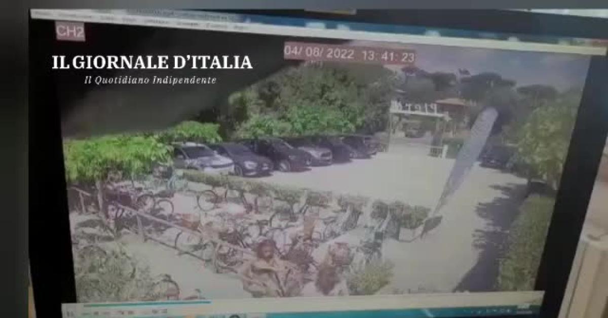 Le telecamere di sorveglianza del Bagno Piero a Forte dei Marmi dove alle 13:41 si è verificato un incidente a causa di un suv che si è fiondato sulla struttura balneare provocando danni e investendo ogni oggetto che trovava sul suo cammino. Il suv aveva appena attraversato la strada principale di Forte dei Marmi, entrando all'interno dello stabilimento e andando a sbattere sulla struttura, che è stata letteralmente abbattuta e dove poco prima erano transitate due donne salve per miracolo.