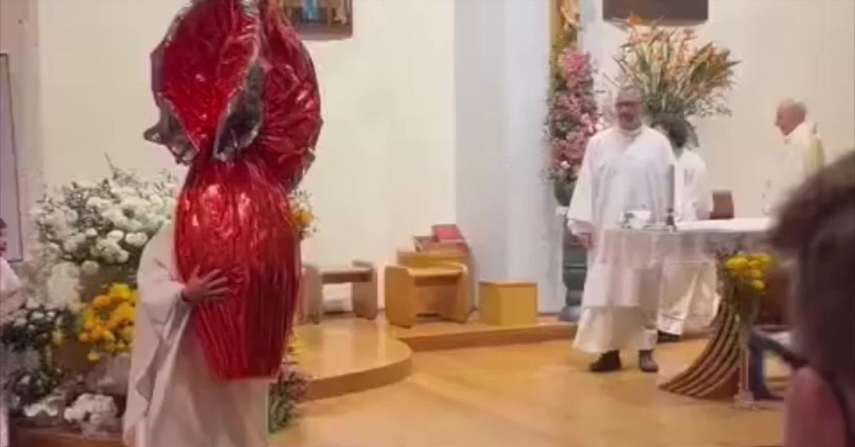 Un prete è inciampato ed è caduto con un gigantesco uovo pasqua di cioccolata. Don Rito Alvarez della parrocchia di San Rocco a Vallecrosia (IM) ha raccontato la sua sventura su Facebook. L'uovo pesava 10 chili, ma sta bene. L'unica "complicazione" della vicenda è essere finito in televisione: il video, spopolato sui social, è stato trasmesso anche da Striscia La Notizia.