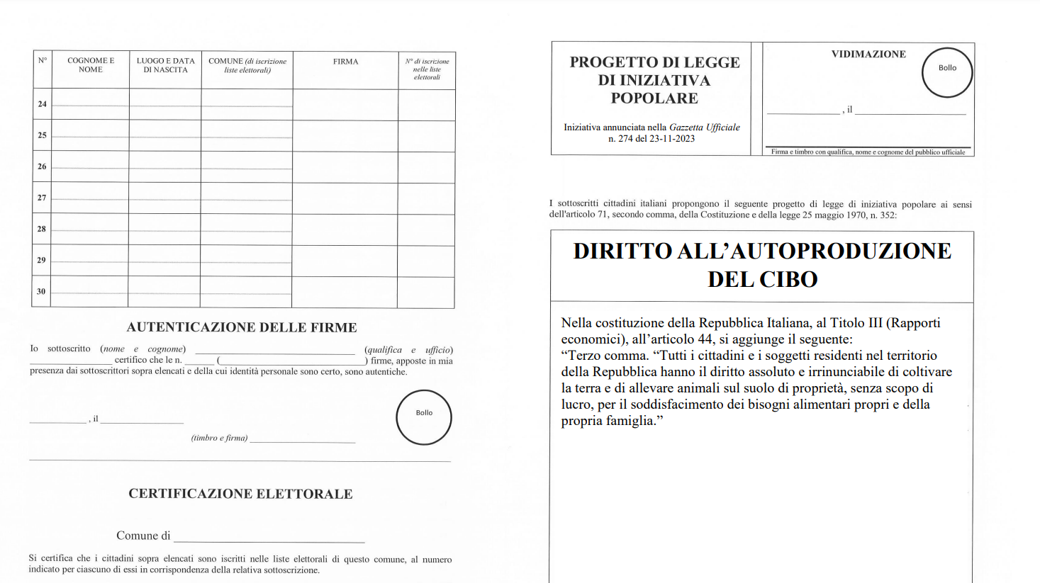 “Terzo comma. “Tutti i cittadini e i soggetti residenti nel territorio della Repubblica hanno il diritto assoluto e irrinunciabile di coltivare la terra e di allevare animali sul suolo di proprietà, senza scopo di lucro, per il soddisfacimento dei bisogni alimentari propri e della propria famiglia.”
