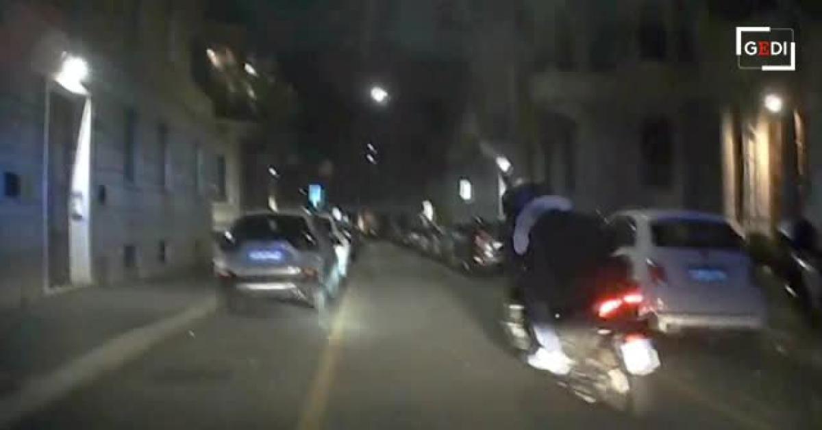 C: "È successo che questi due ragazzi sono scappati col Tmax e sono caduti sul marciapiede. Non rispondono"