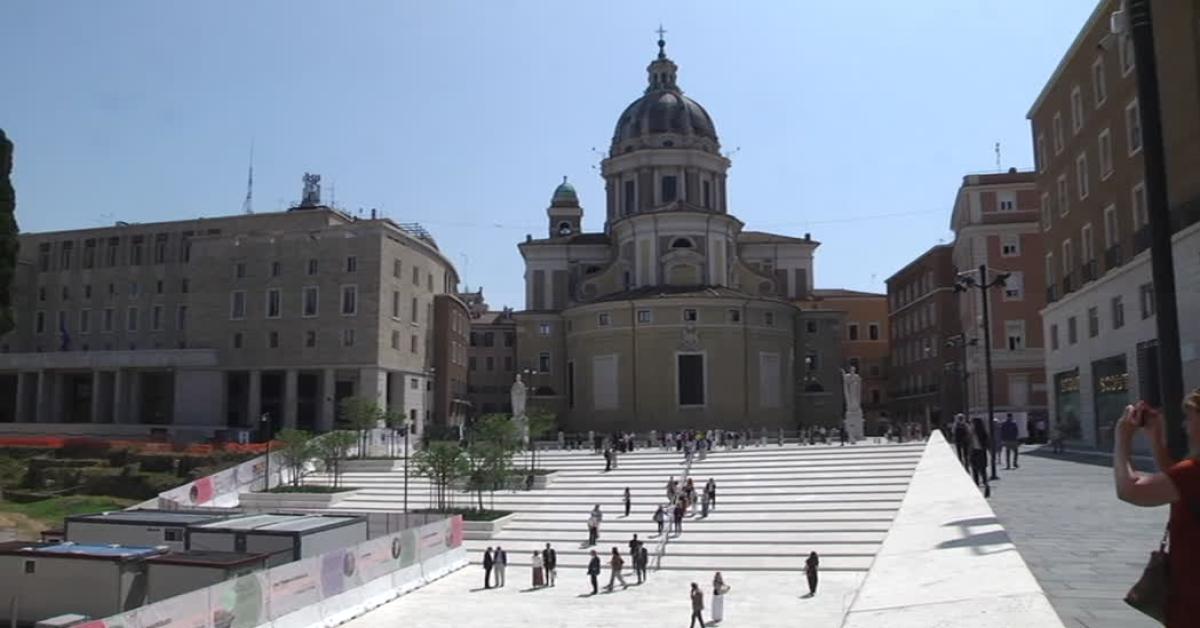 Roma, 6 giu. (askanews) - La nuova Piazza Augusto Imperatore è stata finalmente inaugurata oggi a Roma alla presenza del sindaco Roberto Gualtieri; lo spazio rinnovato tra via del Corso e l'Ara Pacis fa da cornice all'ultima fase del restauro del Mausoleo di Augusto, il più grande sepolcro circolare del mondo antico, che ospita le ceneri di Augusto e della famiglia imperiale. Attorno, la piazza fascista progettata dall'architetto Morpurgo.