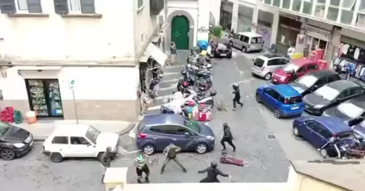 Raccapriccianti le immagini, pubblicate sui propri social dal deputato Francesco Emilio Borrelli, che mostrano le persone brandire gambe di tavoli e sedie come armi e lanciarsi l'uno contro l'altro oggetti di ogni tipo.