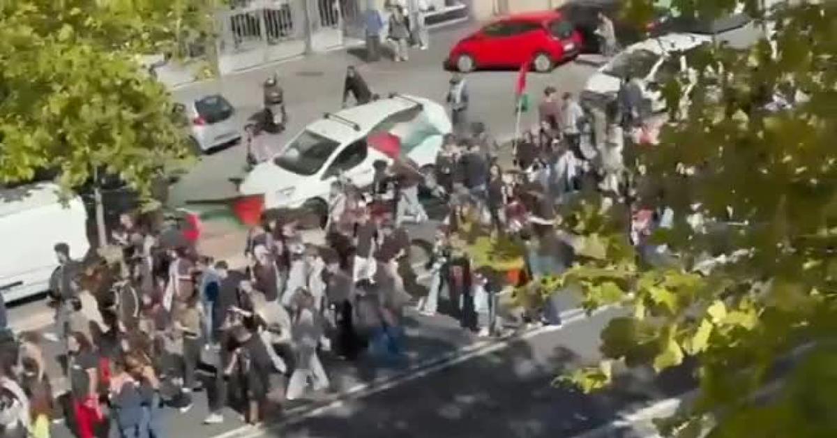 Roma, 3 ott. (askanews) - Il corteo degli studenti de La Sapienza a Roma diretti verso la stazione Termini, lungo la via Nomentana, per unirsi allo sciopero generale con la manifestazione partita da piazza Vittorio per Gaza e la Flotilla.