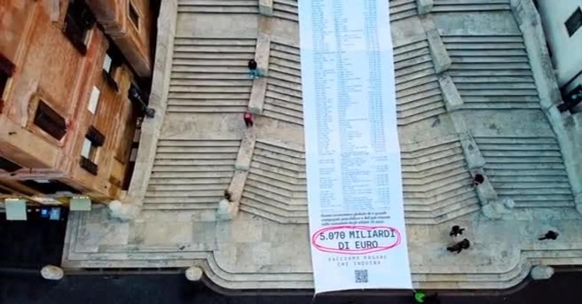 Gli ambientalisti hanno voluto "presentare il conto" della crisi climatica al governo, anche in vista della legge di bilancio, per un totale che supera 5.000 miliardi di euro. Una cifra, sottolinea Greenpeace nelle sue ricerche, "pari al danno economico associato a sei delle più grandi aziende dei combustibili fossili al mondo".