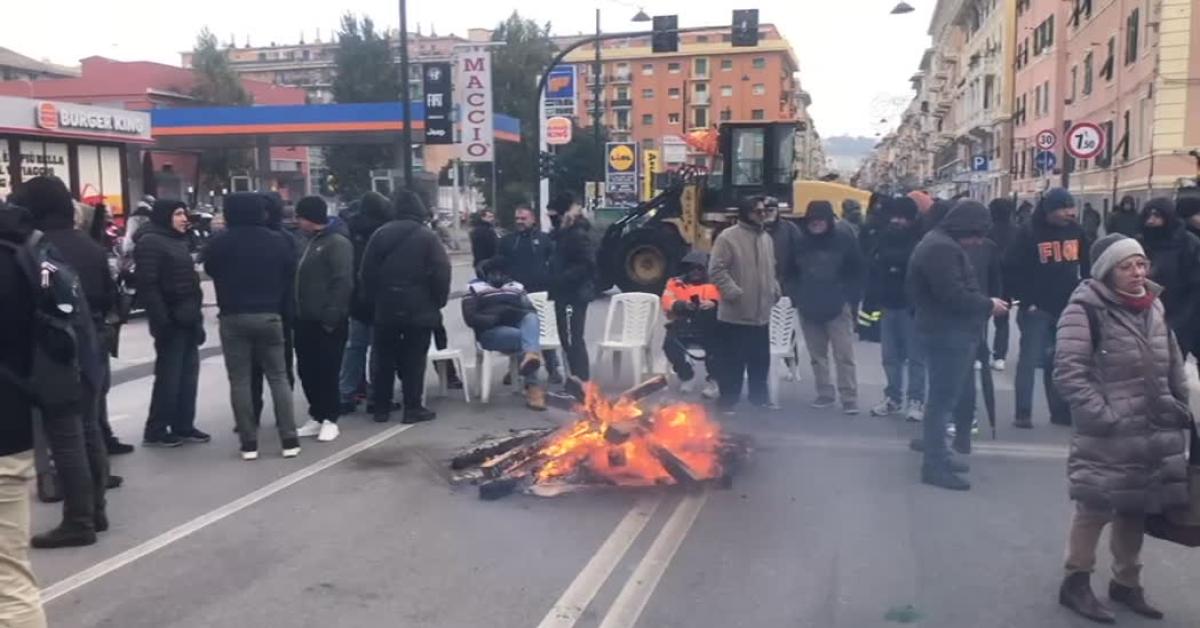 Genova, 1 dic. (askanews) - A Genova proteste dei lavoratori dello stabilimento ex Ilva di Cornigliano con un presidio permanente allestito dalle prime ore del mattino in piazza Savio, snodo fondamentale per la viabilità nel ponente cittadino; è stato bloccato il traffico con i mezzi da lavoro.