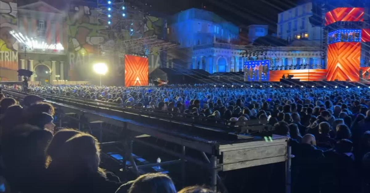 Napoli, 4 dic. (askanews) - Piazza del Plebiscito a Napoli è gremita di fan in attesa della finalissima di X Factor 2025. Già dalle 16 la gente si è messa in coda e a mezz'ora dall'inizio del programma ci sono 16mila persone, secondo quanto riferito dagli organizzatori. La proclamazione del vincitore verrà data attorno alle 23:45