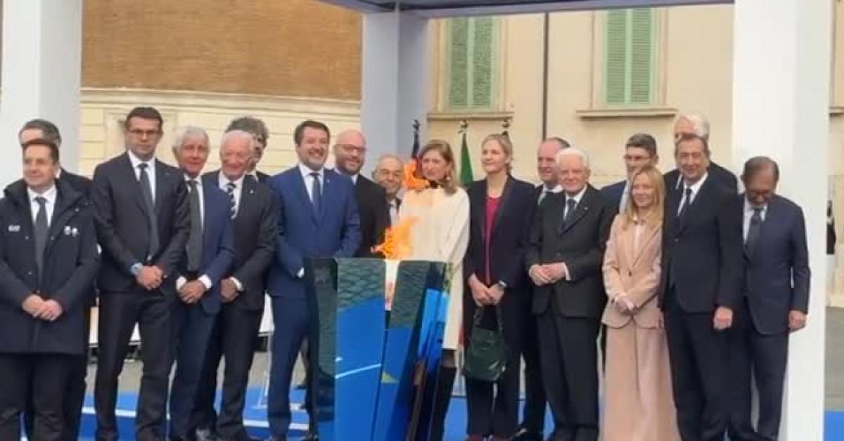 Il presidente della Repubblica ha acceso il braciere che custodisce il sacro fuoco. Il viaggio della fiamma olimpica attraverserà 110 province, 20 regioni per un percorso di 12mila chilometri. Partirà dallo stadio di Marmi, primo tedoforo Gregorio Paltrinieri.