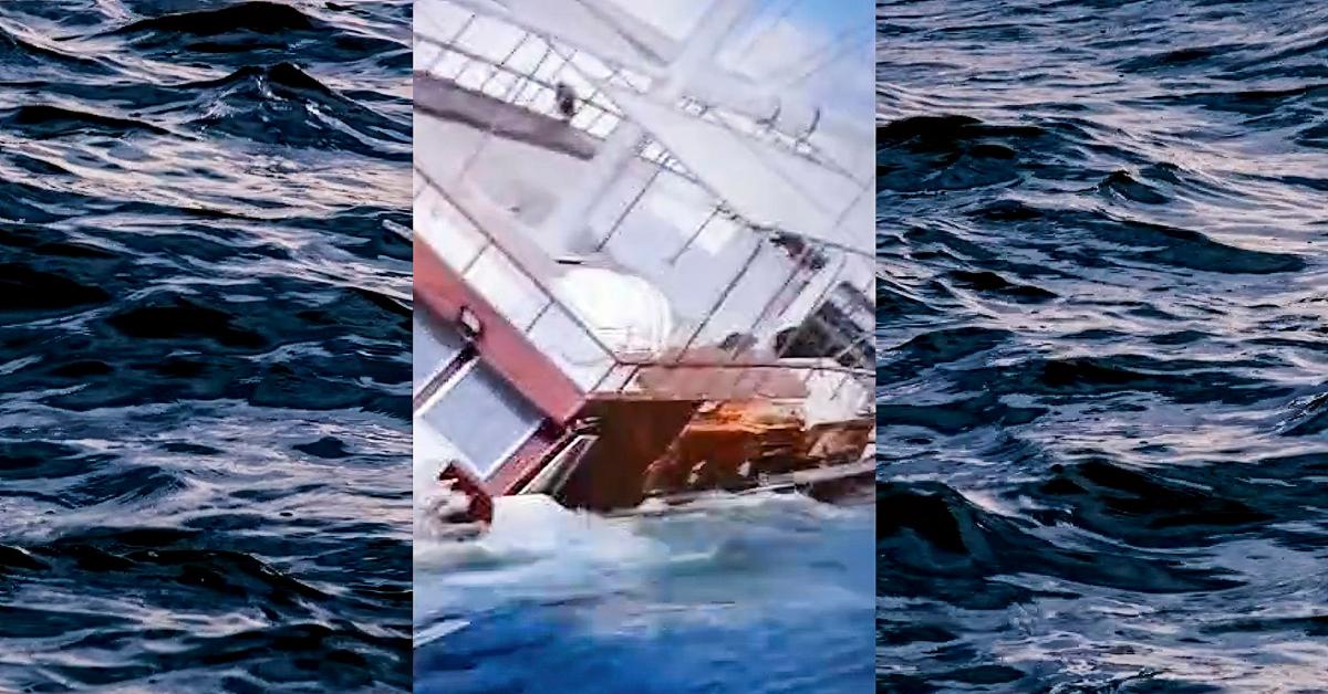Impressionante il video, che mostra la grossa barca ormai inghiottita dal mare a ridosso del porto, con suppellettili e oggetti che vanno alla deriva.