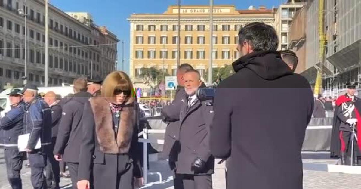 Roma, 23 gen. (askanews) - Il mondo della moda a Roma per l'addio a Valentino. Nelle immagini l'arrivo alla Basilica di Santa Maria degli Angeli e dei Martiri in piazza della Repubblica a Roma di Anna Wintour, Tom Ford e Donatella Versace.