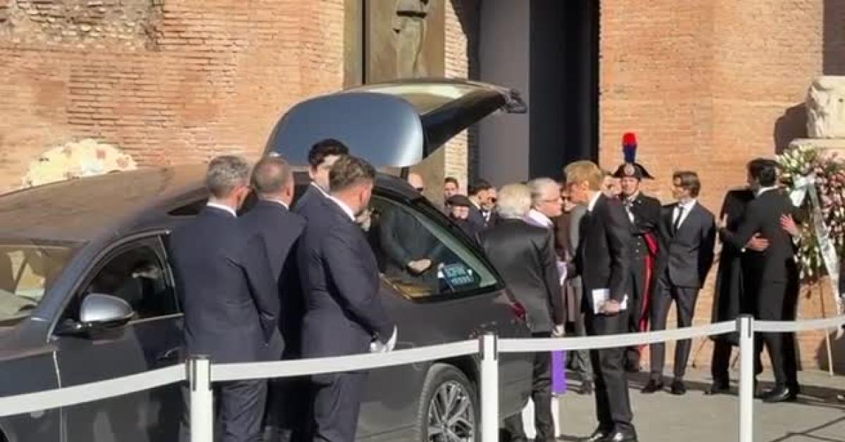 Roma, 23 gen. (askanews) - Applausi nella Basilica strapiena di Santa Maria degli Angeli a Roma durante l'uscita del feretro dello stilista Valentino Garavani, scomparso lunedì 19 gennaio a 93 anni. Sopra la bara un cuscino di rose bianche. Ad accompagnare l'uscita anche le note del brano di Umberto Bindi "Il nostro concerto". Fuori, davanti al feretro, il compagno Vernon Bruce Hoeksema ha salutato affettuosamente lo storico ex di Valentino, Giancarlo Giammetti.