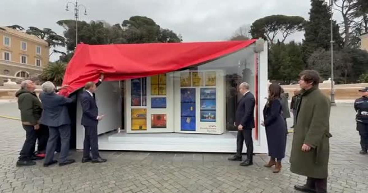 Roma, 3 feb. (askanews) - Un 'libro' musicale animato con finestre che si aprono su video a tema alimentare: l'installazione artistica realizzata per Barilla dall'artista Mauro Seresini e dall'animatore Virgilio Villoresi ha preso il via da piazza del Popolo a Roma alla presenza del ministro dell'Agricoltura Francesco Lollobrigida, del sindaco di Roma Roberto Gualtieri e del vicepresidente di Fondazione Barilla, Paolo Barilla.
