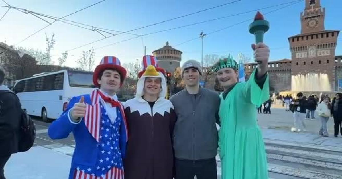 "Siamo arrivati oggi a Milano per le Olimpiadi. Abbiamo seguito l'hockey e la Francia ha perso, poi andremo a Cortina e a Bormio", raccontano dei tifosi francesi.