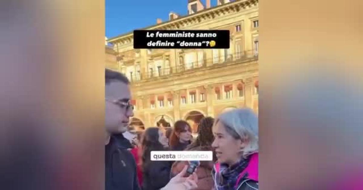 Mentre a Bologna le femministe marciavano in corteo da piazza VIII Agosto a Piazza Maggiore contro il Ddl Bongiorno, sono state intervistate alcune manifestanti. A loro, visto che manifestano per le donne, è stato chiesto cosa siano le donne. Molte di loro sono andate in tilt, con risposte esilaranti: “Non esiste, non c’è risposta”, hanno dischiarato.