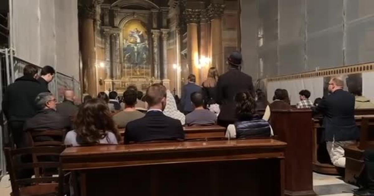 Alcuni di loro ancora con il pass al collo per prendere parte ai prossimi due incontri previsti di Thiel, che, nonostante le voci dei giorni precedenti e la grandissima attenzione mediatica prodotta dalla sua visita a Roma, non si è presentato in Chiesa. Inizialmente, per sviare i giornalisti e i curiosi, ma anche gli stessi partecipanti, era corsa voce che la funzione religiosa si sarebbe tenuta nella chiesa di San Giovanni Battista dei Fiorentini, a una decina di minuti a piedi di distanza.