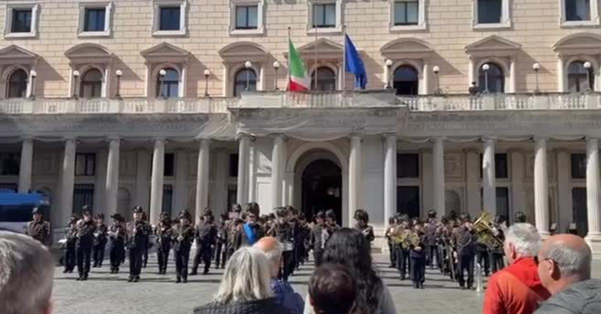 Affacciati alle finestre di Palazzo Chigi anche diversi dipendenti della presidenza del Consiglio ad ascoltare le bande che, oltre all'Inno di Mameli, hanno suonato le arie più celebri di diverse opere italiane come la marcia trionfale dell'Aida, il Nessun Dorma della Turandot. La prima banda a esibirsi è stata quella della polizia locale di Roma Capitale. A seguire, da programma, la banda del corpo nazionale dei Vigili del fuoco, la banda della Polizia penitenziaria, la banda della Polizia di Stato, la banda della Guardia di finanza, la banda dell'arma dei Carabinieri, della banda dell'Aeronautica militare, la banda della Marina militare e la banda dell'Esercito.