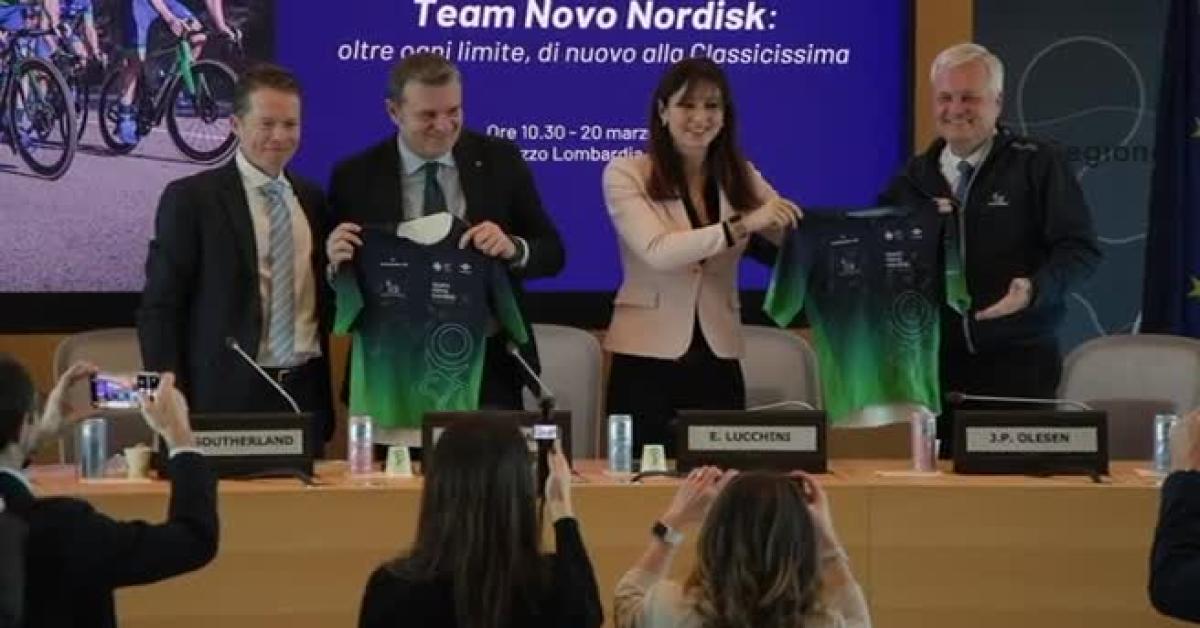 Milano, 20 mar. (askanews) - È stato presentato a Palazzo Lombardia a Milano il Team Novo Nordisk, prima e unica squadra al mondo di ciclisti professionisti con diabete tipo 1 che quest'anno torna a partecipare alla Milano-Sanremo, facendosi portavoce di diversi messaggi: mostrare al mondo che è possibile andare oltre i limiti che una malattia cronica impone e promuovere un cambiamento positivo per le persone. La presenza del Team Novo Nordisk alla gara ciclistica inoltre quest'anno cade in coincidenza con la Giornata Nazionale del Movimento per la Salute. E il tema degli stili di vita è al centro dell'impegno portato avanti dall'azienda.
