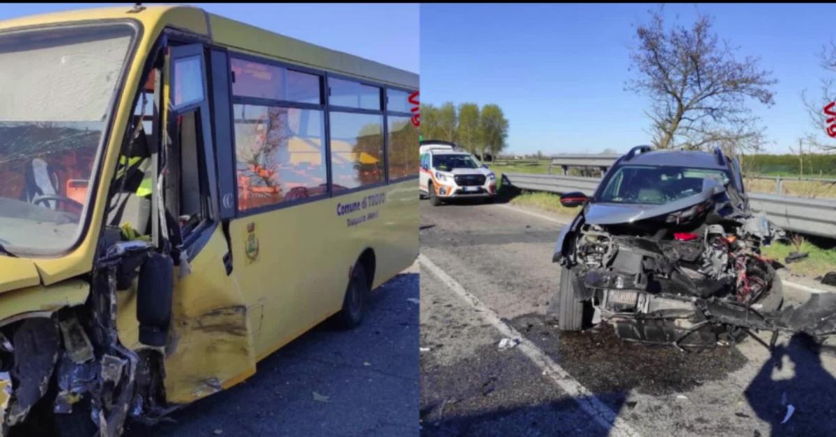 Attimi di paura nella mattinata di lunedì 30 marzo a Trivolzio, a circa 15 minuti da Pavia, dove uno scuolabus con a bordo una decina di bambini si è scontrato frontalmente con un’auto lungo la strada provinciale 22.