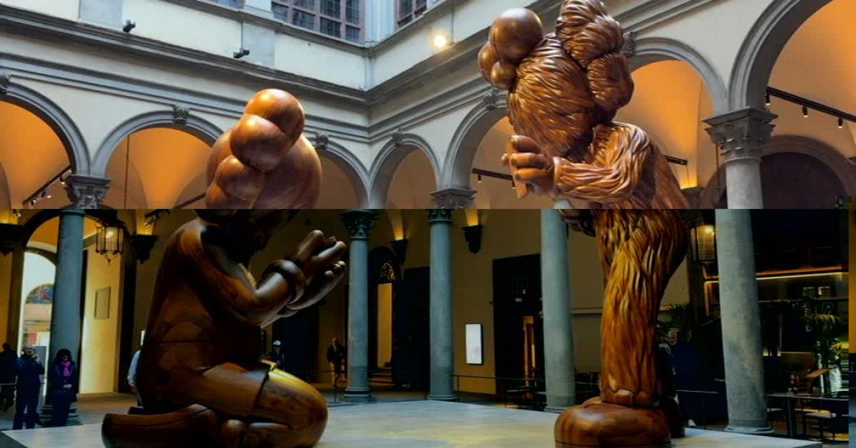 Firenze, 10 nov. (askanews) - Due enormi personaggi di un celebre artista del pop contemporaneo nel cortile di Palazzo Strozzi posti in dialogo, non solo simbolico, con la mostra su Beato Angelico, figura chiave del Rinascimento. E' l'installazione "The Message" del newyorkese KAWS, che il direttore della Fondazione Palazzo Strozzi. Arturo Galansino, ha voluto portare a Firenze.