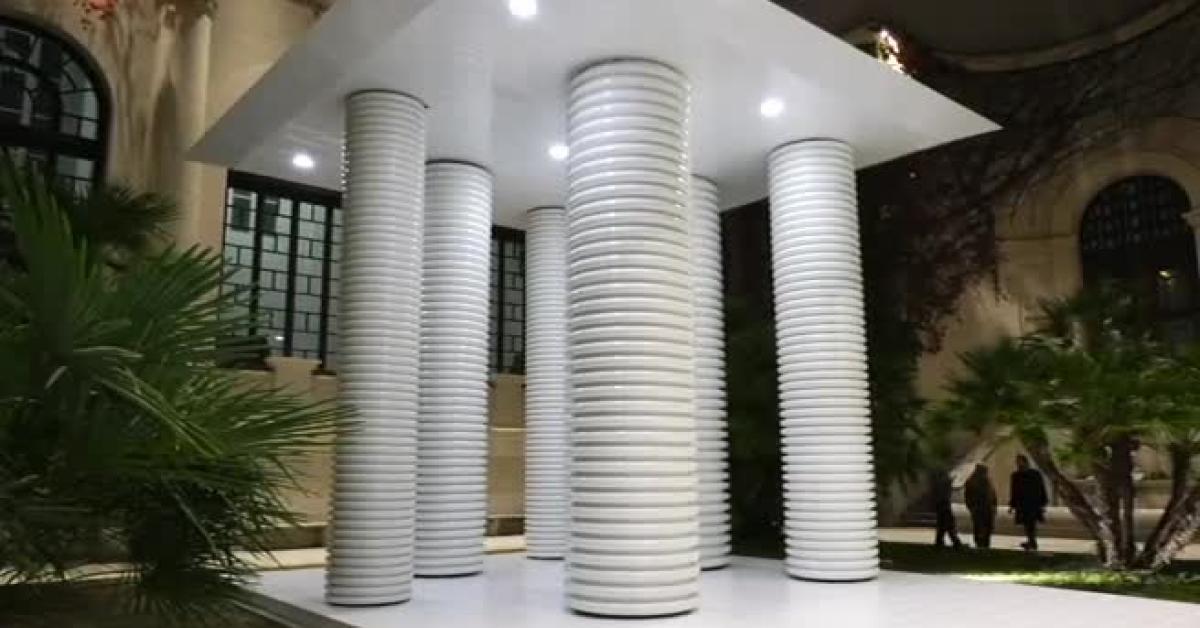 L'opera di Massimo Alvisi e Junko Kirimoto, realizzata per la prima volta in occasione di INTERNI CRE-ACTION durante il FuoriSalone a Milano, sarà esposta nel Cortile Centrale della Galleria Nazionale fino all'8 dicembre. Il tempio di colonne bianche in plastica riciclata diventa un organismo trasformabile e dinamico grazie all'azione dei visitatori, stimolando sia la riflessione personale che la condivisione collettiva. Partner dell'installazione è COREPLA, Consorzio Nazionale per la Raccolta, il Riciclo e il Recupero degli Imballaggi in Plastica. Giovanni Cassuti, Presidente di Corepla, ha spiegato: "Noi come Corepla abbiamo l'ambizione di dare vita nuova a tutto ciò che non deve essere scartato, ma raccolto, selezionato, recuperato e selezionato. Può tornare in vita in vari modi, e può tornare ad essere anche un'opera d'arte, una scultura meravigliosa, forte ma leggera, come quella che stiamo presentando qui alla Galleria Nazionale d'Arte Moderna d'Italia".
