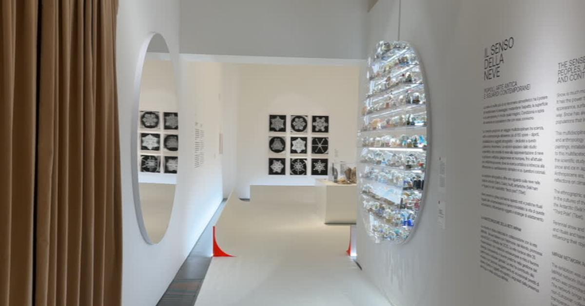 Il curatore Alessandro Oldani ha presentato altre opere esposte. "La mostra intende essere un viaggio multidisciplinare attraverso diverse culture sul tema della neve per riflettere su come vivere in ambienti innevati abbia avuto una grande importanza per diverse culture, fino ad arrivare a cosa significa oggi vivere nella neve, al fatto che la neve spesso sta sparendo da molte delle nostre città, da molti degli ambienti in cui viviamo. Vedete alle mie spalle un'opera di un artista importante, Walter Niedermayr, che ha documentato proprio l'impatto dei cambiamenti climatici sulla neve, sui ghiacciai e sull'ambiente in generale che ci circonda. Il primo studioso che ha capito che i fiocchi di neve sono tutti uno diverso dall'altro si chiama Wilson Bentley, è stato anzi soprannominato Wilson Snowflakes, quindi Fiocco di neve Bentley, che a fine Ottocento ha realizzato delle fotomicrografie dei fiocchi di neve, ne abbiamo esposte alcune. Poi c'è stato uno studioso, uno scienziato giapponese, che si chiama Ukichiro Nakaya , che ha realizzato negli anni Cinquanta il famoso diagramma di Nakaya in cui ha proprio classificato tipologicamente tutte le varie forme che possono prendere i fiocchi di neve osservati chiaramente al microscopio. Barbara T. Smith, un artista statunitense ,nel 1975 ha messo assieme arte e scienza, ha collaborato con un informatico suo amico, per realizzare 3.000 fogli di carta perforata da stampante dell'epoca con queste diverse forme di fiocchi di neve e poi è salita sulla sommità di un albergo a Dallas, quindi una città desertica che la neve non la vede, e li ha buttati a terra facendo una sorta di nevicata artificiale".