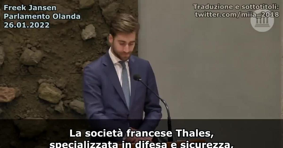 "La società francese Thales, specializzata in difesa e sicurezza, ha dichiarato sul suo sito web che i certificati verdi Covid serviranno come primo passo per l'introduzione dell'ID digitale, cioè il documento d'identità digitale dove sono raccolti e conservati tutti i tipi di dati personali. Il partito di maggioranza del Paese è favorevole, ma ciò è estremamente pericoloso. Il Green pass non funziona. Con la scusa della Salute Pubblica siamo condotti in uno spaventoso sistema di controllo e noi ci opporremo con le unghie e con i denti". Lo sostiene Freek Jansen, membro della Camera dei rappresentanti e politico olandese del partito populista conservatore Forum for Democracy, davanti ai colleghi del Parlamento.