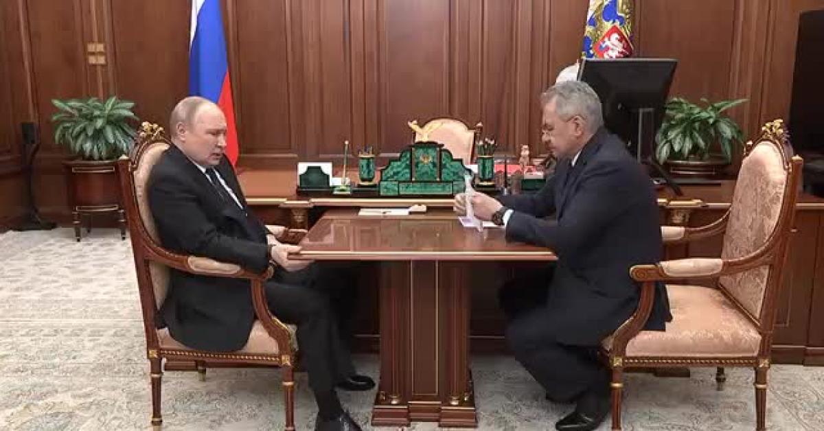 Mentre il suo ministro parla in modo sciolto e si muove a proprio agio, Putin sembra molto rigido: ha la schiena sempre poggiata alla poltrona, non si fa mai avanti sul tavolino, di cui tiene sempre i bordi con le mani. Sembra quasi a disagio e nervoso, come se desiderasse che l'incontro finisse al più presto. Le stesse frasi con cui ordina a Shoigu di non completare l'assedio dell'impianto metallurgico sembrano da telegramma e mal si prestano al potenziale propagandistico dell'occasione.