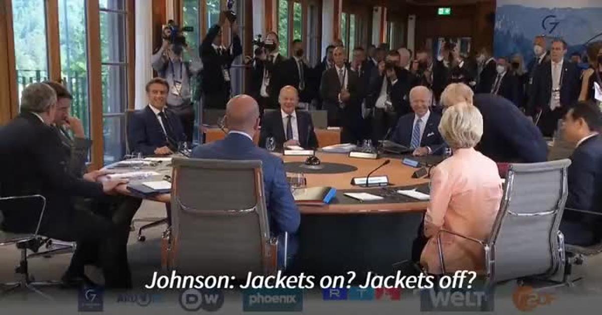 I leader del G7, seduti al tavolo delle discussioni, in un momento di scambio con i giornalisti hanno ironizzato su Vladimir Putin. Il premier britannico Boris Johnson aveva scherzato dicendo che i leader del G7 potevano spogliarsi per "dimostrare di essere più duri di Putin". Il premier canadese Justin Trudeau aveva aggiunto: "Organizziamo un giro a cavallo a petto nudo".