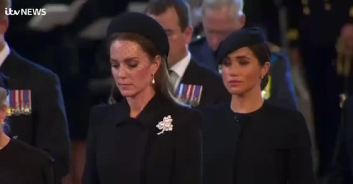 La principessa del Galles, Kate Middleton, piange davanti al feretro della regina Elisabetta II: il video.