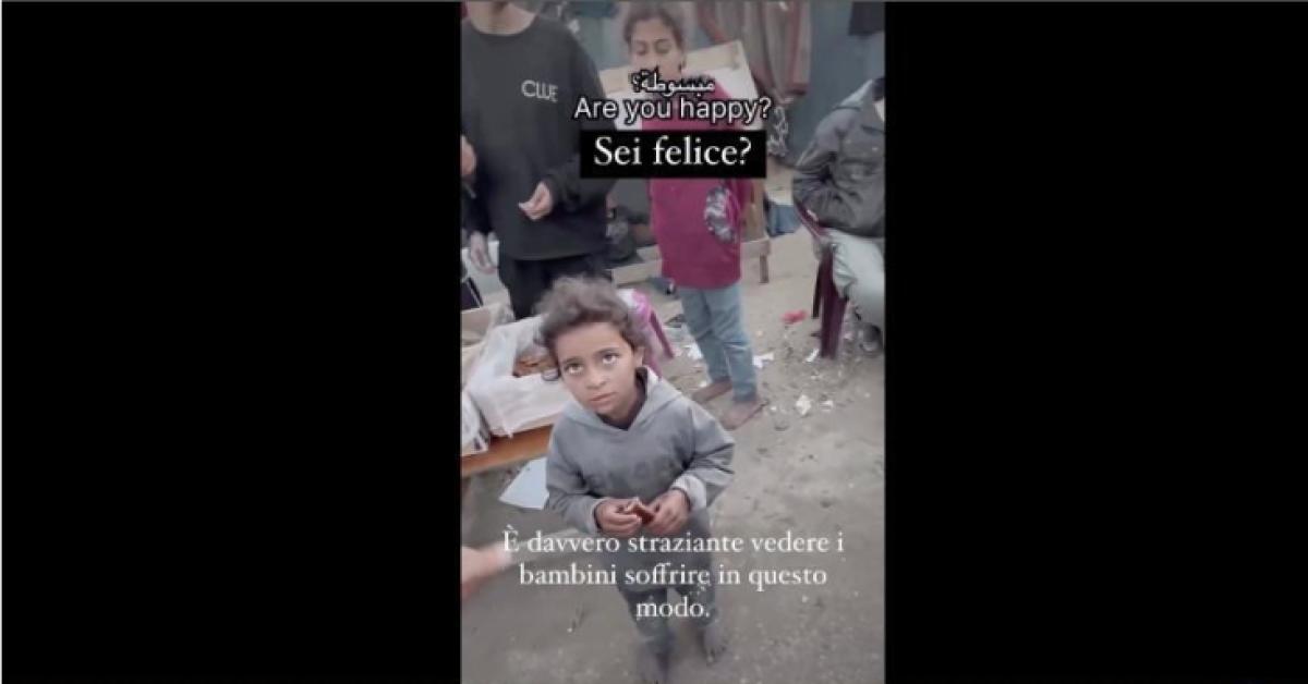 Continua il disastro umanitario a Gaza. In questo video si vede una bambina, che affamata, si avvicina a del cibo chiedendo con il solo sguardo di poter prender qualcosa per nutrirsi. Un passante che le si avvicina, le chiede se può comprare lui per lei qualcosa. Così, l'uomo l'aiuta e le paga coi propri soldi un biscotto. La piccola può finalmente mangiare qualcosina e alla domanda: "Sei felice?", lei non risponde anche se i suoi occhi sono eloquenti: dolore, paura, sofferenza, tristezza infinita accompagnati da un piccolo cenno positivo con la testa per aver ottenuto qualcosa da mangiare chissà dopo quanto tempo.