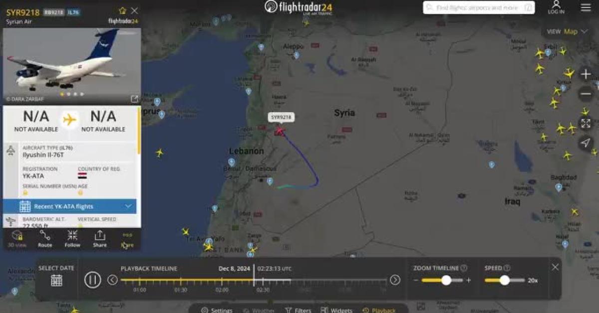Quel che è certo è che l'aereo che trasportava Assad è scomparso dai radar. Due fonti hanno spiegato che "forse il transponder era spento, ma più probabile che l’aereo sia stato abbattuto". Alcuni osservatori sostengono che "i dati 3D di flightradar del jet ampiamente sospettato di trasportare Bashar al-Assad in fuga (mostrano che) se questa non è una rotta completamente falsificata, sembra MOLTO brutta (per lui), rapida discesa dopo il sorvolo del territorio controllato dall'opposizione vicino a Homs".