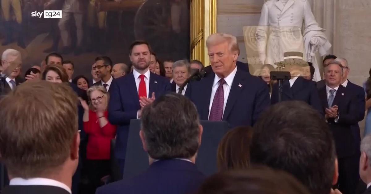 “L’età dell’oro dell’America inizia adesso”, ha esordito il neo-presidente durante il suo primo discorso da 47° Presidente degli Stati Uniti, dopo aver giurato sulla Bibbia sui cui posò la mano anche il primo presidente Abramo Lincoln nel 1861, ma anche su una Bibbia che gli fu regalata da sua madre quando aveva 9 anni.