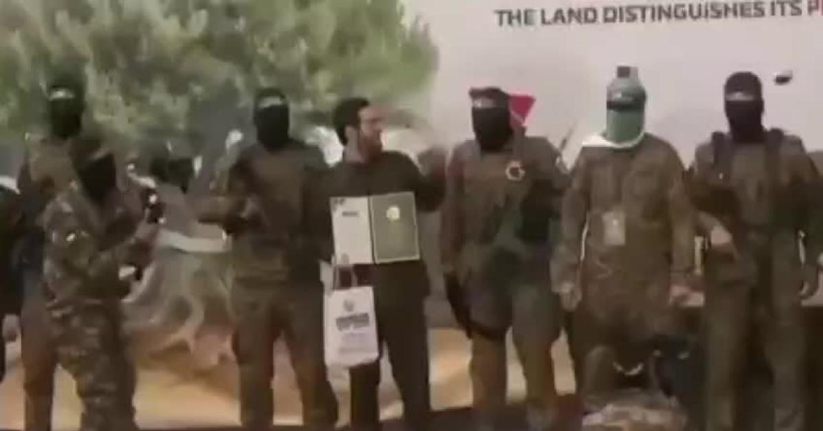 Il bacio di gratitudine di Omer Shem Tov, l'ostaggio israeliano di 22 anni, a due miliziani di Hamas.