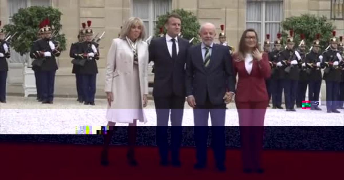 Parigi, 5 giu. (askanews) -Il presidente brasiliano Luiz Inàcio Lula da Silva è stato accolto all'Eliseo dal presidente francese Emmanuel Macron e la Première dame Brigitte, nel primo giorno della sua visita di Stato in Francia. Sul tavolo le crisi internazionali e l'accordo di libero scambio tra UE e Mercosur, al quale Parigi si oppone fermamente. Al suo arrivo, accanto a Lula la First Lady brasiliana Rosangela da Silva.