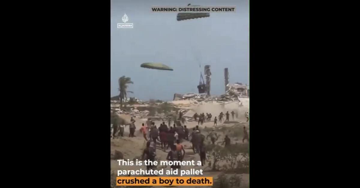 Un video angosciante mostra il momento in cui un ragazzo di 15 anni è stato ucciso da un bancale di aiuti umanitari caduto a Gaza. La vittima è il 15enne Muhannad Eid, un ragazzo palestinese che si era recato sul luogo di lancio degli aiuti per cercare del cibo.
